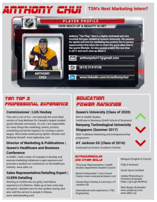 The whole point is to STAND OUT not BLEND IN.So why the &#%$ would you use the exact same template as everyone else?Answer: because my guidance counsellor told me so.Question the question: when was the last ^&#@ing time they applied for a job?Here is the best resume I have ever seen - I shared this with dozens of people internally.The resume was not made for me as it was specific for TSN - but I discovered that Anthony has agency...and I hired him.Dozens of my colleagues were eager to meet him before he started and he already had a halo effect.Agency walks through the door before you do.