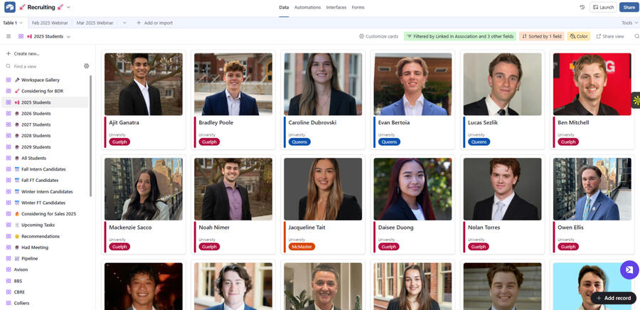 High agency people find better tools and then learn how to use them.Low agency people use what everyone else is using and don't question anything.Airtable is far superior to track and move projects along.Here is a sample screen shot of people I am interested in staying in touch with - students should have an employer version of this.